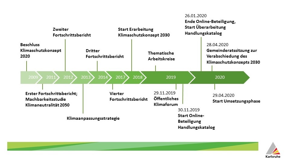 Die Stadt Karlsruhe verfolgt als langfristiges Ziel, bis 2050 im Stadtgebiet klimaneutral zu sein. Die Stadtverwaltung selbst strebt aufgrund ihrer Vorbildfunktion die Klimaneutralität bereits für 2040 an.
